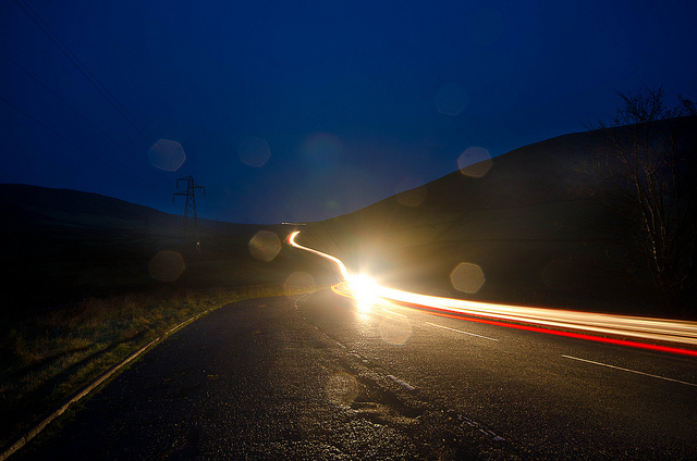 I had a few hours to write, yesterday, and managed to burn through the first draft of a 2,500 word ghost story. It’s set on the drive between Kendal and Shap on the surprisingly desolate A6 – a road I’ve driven hundreds of times when working in Great Strickland. This atmospheric photo, pinched from a very talented photographer called Richard Berry, shows the pylons that stalk the route just visible against the dusk. It’s a phenomenally stark landscape, with sections of the road blasted through steep slate hillside, and gigantic quarried cliffs glaring dark against a backdrop of the Lakes. Perfect for a foggy day and a haunting…